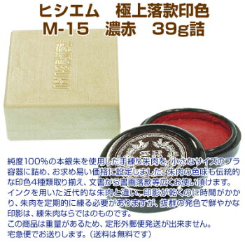 【サプライ】【朱肉】ヒシエム 極上落款印色M-15 39g詰 濃赤 【YOUNG zone】【HLS_DU】 ▲