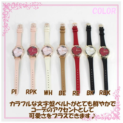 ハート以外の隙間は全て透かしの仕様になっており向こう側が見えます◎カラフルな文字盤・ケース・ベルトがとても鮮やかでコーデのアクセントとして可愛さをプラスできます♪