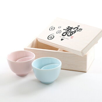 【ギフト】千秋 育子 うず猪口 ピンク・青磁ペアセット 60ml (UZUCHOKO-PB) [蛇の目利き酒富士山おちょこぐい呑み焼酎辛口日本酒オリジナル盃和風][専用箱入][手作り][日本製]