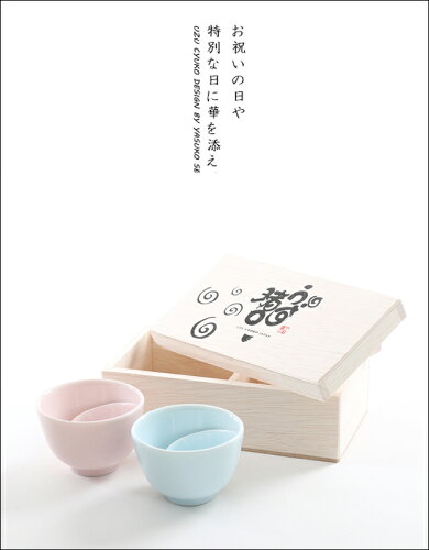 【包装のご案内】 千秋 育子 うず猪口 ピンク・青磁ペアセット 60ml (UZUCHOKO-PB) うずまきと、らせんは、古来から水や永遠、誕生再生をあらわす縁起物であり、エネルギーの流れをあらわすものです。