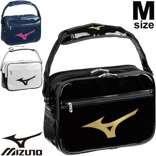 エナメルバッグ ショルダーバッグ Mサイズ Mizuno ミズノ スポーツバッグ 20L メンズ レディース ジュニア 学生 ビッグロゴ ななめ掛け 肩掛け ジム 部活 野球 陸上 通学鞄 かばん /33JS8213