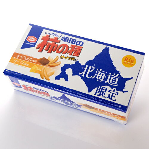 ■商品詳細情報 商品名 亀田の柿の種 北海道限定[16袋入] 内容量 192g(2種類×8袋) 原材料名 キャラメル風味:(ピーナッツ、植物油脂(大豆を含む)、食塩)、米(国産)、でん粉、砂糖、しょうゆ(小麦、大豆を含む)、クリーミングパウダー(乳成分を含む)、食塩、酵母エキスパウダー、たんぱく加水分解物(卵、鶏、豚を含む)、こんぶエキス、調味料(アミノ酸等)、香料、カラメル色素、甘味料(スクラロース、ステビア)、乳化剤 チーズ風味:ピーナッツ(ピーナッツ、植物油脂(大豆を含む)、食塩)、米(国産)、でん粉、しょうゆ(小麦、大豆を含む)、発酵調味液、砂糖、食塩、ホエイパウダー、チーズパウダー、肉エキス、調味料(小麦、大豆、鶏、豚、ごまを含む)、たんぱく加水分解物、香辛料、酵母エキスパウダー、粉末しょうゆ、調味料(アミノ酸等)、香料、酸味料、甘味料(スクラロース)、乳化剤、香辛料抽出物 アレルギー品目 -- 賞味期限 製造より150日 保存方法 直射日光、高温多湿を避け保存して下さい 製造者 アジカル株式会社(亀田製菓グループ) 発送温度帯 通常便・冷蔵便・冷凍便 到着の目安 通常はご注文より2〜4日後のお届けになります。