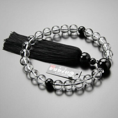 【全品P2倍+10%割引クーポン発行中】【数珠袋付き】モダン念珠 数珠 男性用 22玉 本水晶 3天 黒オニキス 黒オニキス珠房<黒>【創業大正七年 神戸珠数店 略式数珠 京念珠 京都 葬式 正絹房 IM MN-013 2000100401828】【送料無料】
