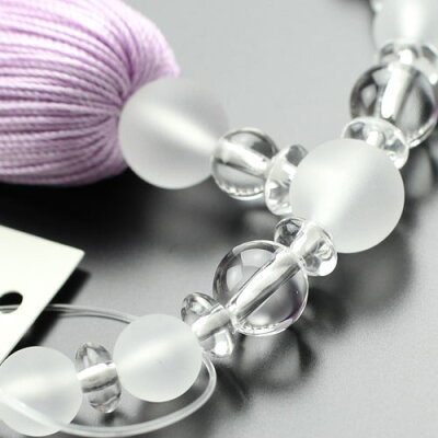 【全品P2倍+10%割引クーポン発行中】【数珠袋付き】モダン念珠 数珠 女性用 約8ミリ 本水晶/約7ミリ 朝霧水晶×2/水晶平玉 朝霧水晶玉房<藤>【創業大正七年 神戸珠数店 略式数珠 京念珠 京都 葬式 正絹房 MN-006 IM 2000200402121】【送料無料】