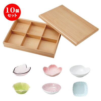 10個セット ☆ 松花堂 ☆ 六つ仕切り 花セット 木製 [ D-37.6 S-26 H-6.3cm ] 【 料亭 旅館 和食器 飲食店 業務用 自宅用 】