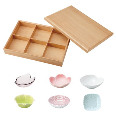 [商品名] 六つ仕切り 花セット 木製[素材] 陶器[寸法] [ D-37.6 S-26 H-6.3cm ]結婚式のお返し、母の日のプレゼント、退職祝いなど、さまざまな場面でご利用いただけるギフト用の商品です。